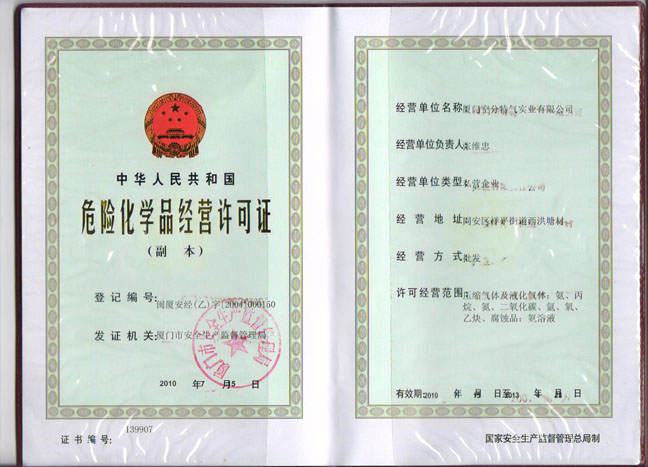 危險化學(xué)品生產(chǎn)單位登記證(正本)